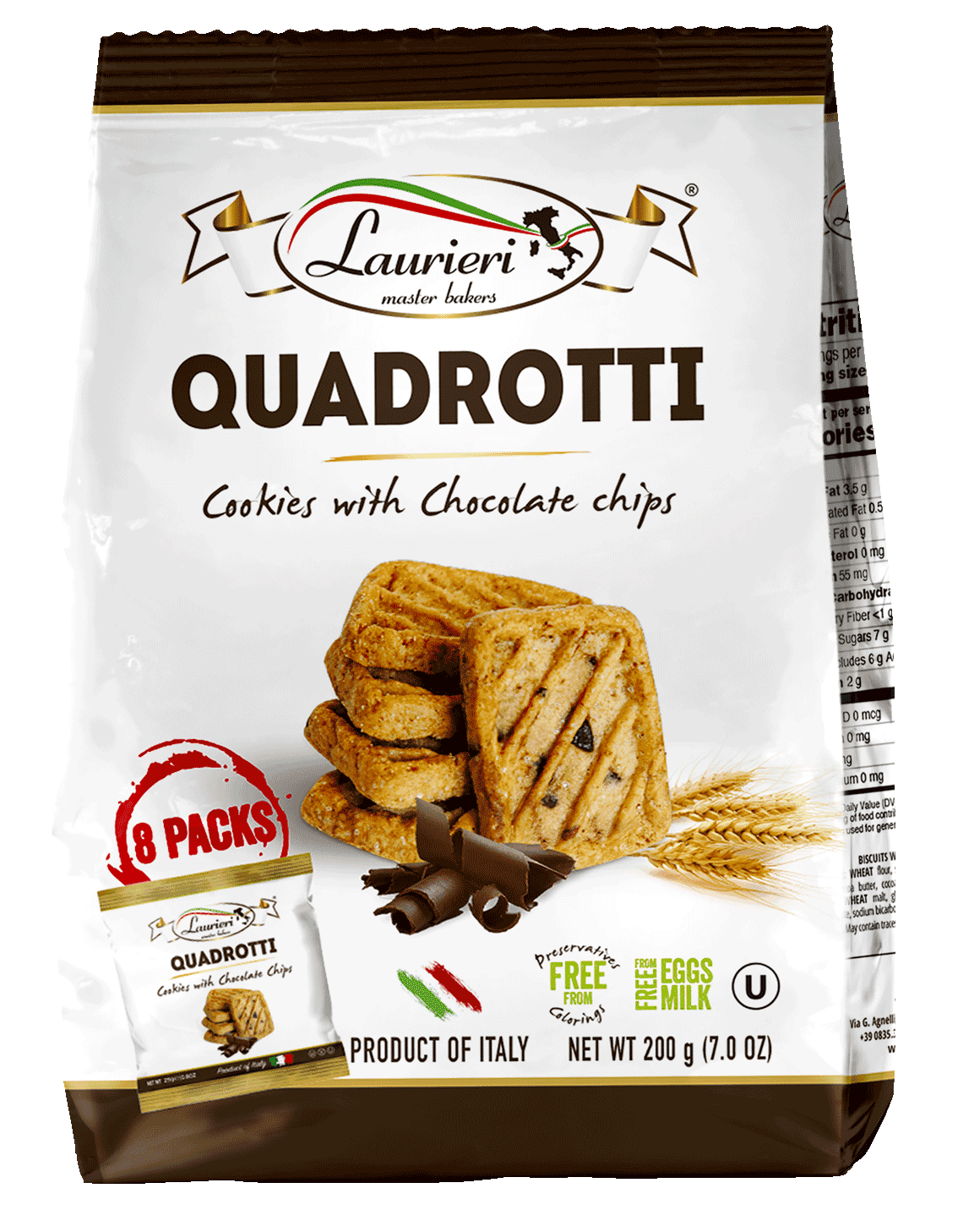 WHEAT Flour, sugar, sunflower oil, 10% chocolate chips (sugar, cocoa butter, cocoa mass, cocoa powder, emulsifier: SOY lecithin), WHEAT malt, glucose syrup, , raising agents (ammonium bicarbonate sodium bicarbonate), sea salt, flavourings.