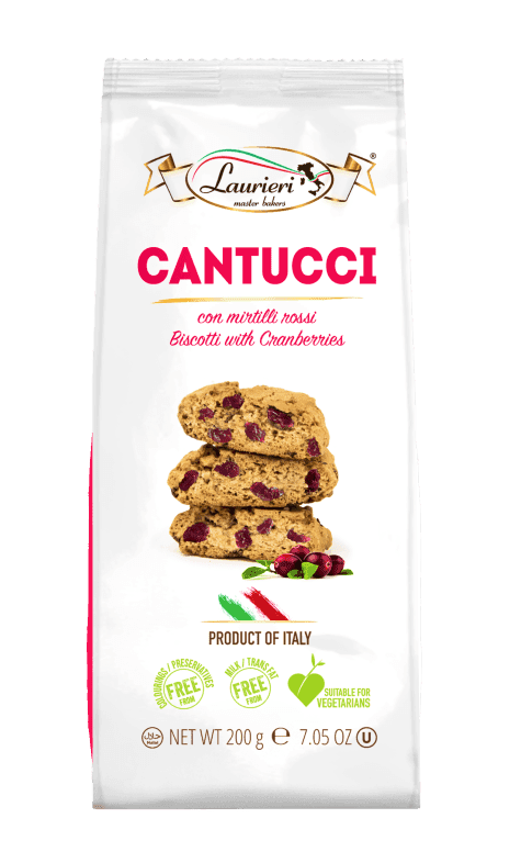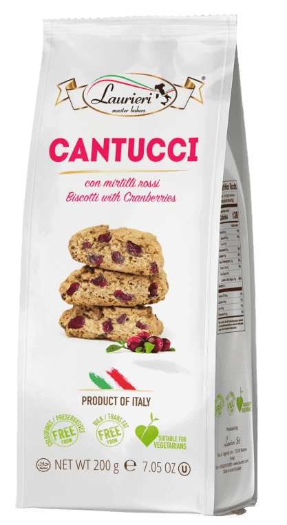 Farina di GRANO, Zucchero, 20% Cranberries (mirtilli rossi, zucchero, olio di semi di girasole), Olio di semi di girasole, Agenti lievitanti (bicarbonato di ammonio, bicarbonato di sodio), Aromi.