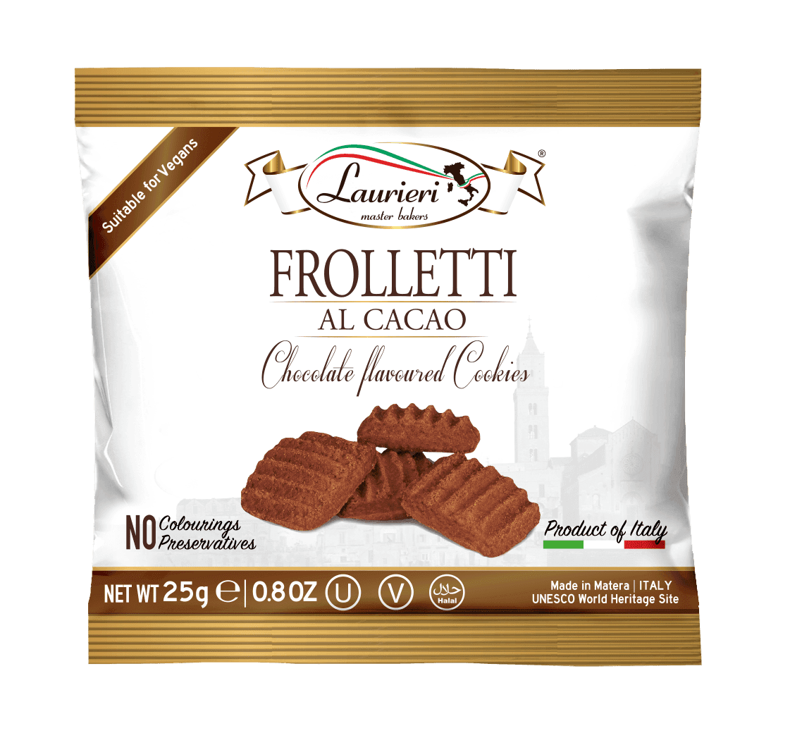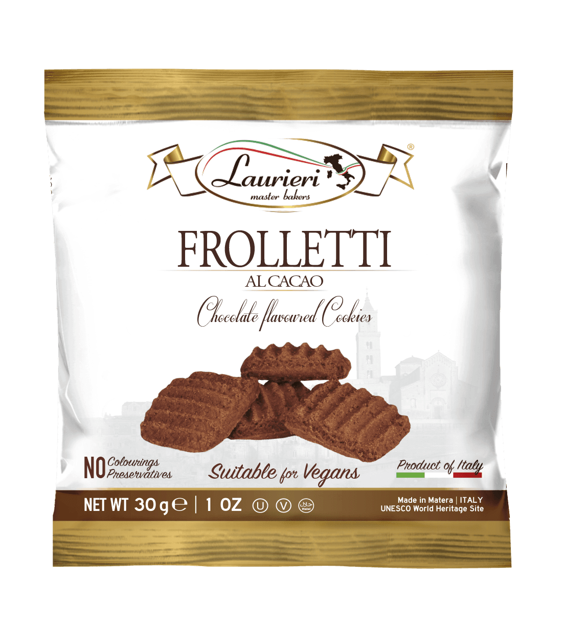 FARINA DI GRANO, zucchero, olio di semi di girasole, polvere di cacao al 2,5% (non UE), agenti lievitanti (bicarbonato di ammonio, bicarbonato di sodio), sciroppo di glucosio, sale marino, aromatizzanti