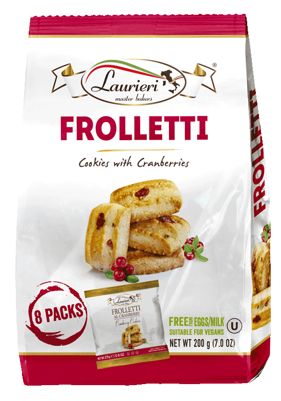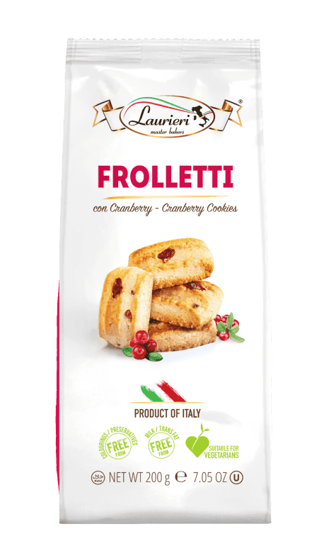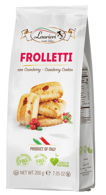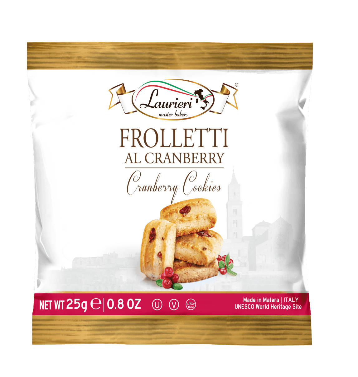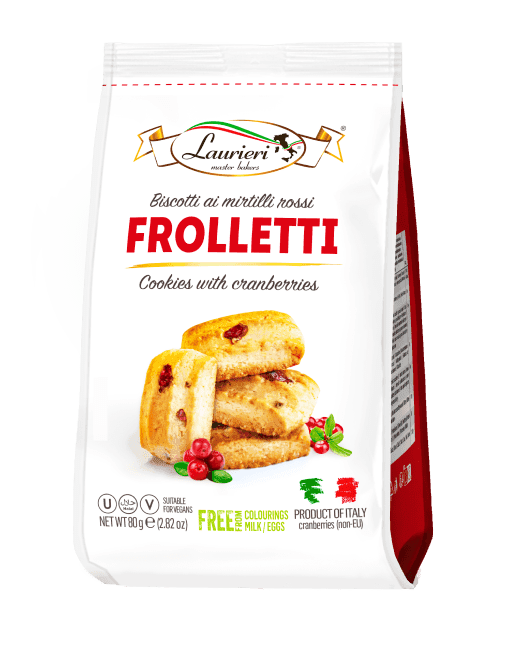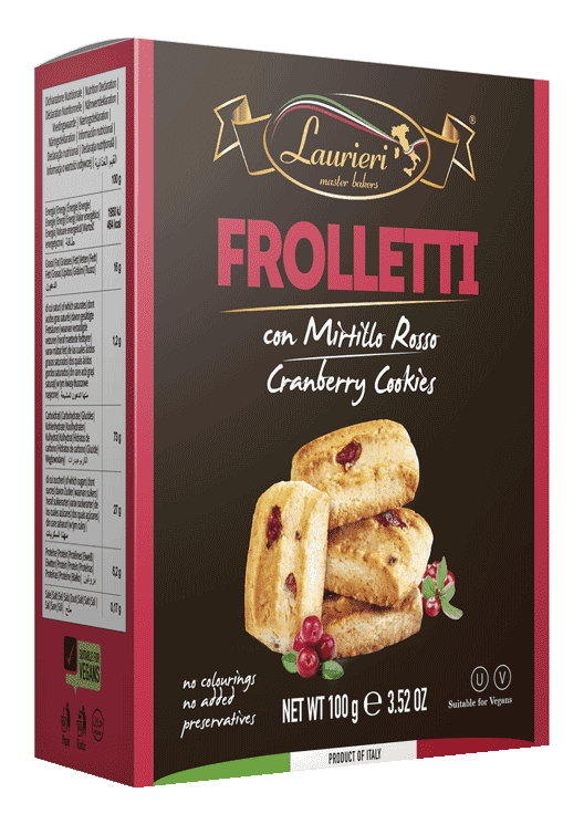 Farina di grano, zucchero, olio di girasole, mirtilli rossi al 3,5% (mirtilli rossi, zucchero, olio di girasole) (non-UE), agenti lievitanti (bicarbonato ammonico, bicarbonato di sodio), sciroppo di glucosio, sale marino, aromi.