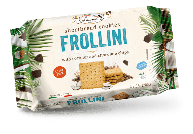 Farina di GRANO, zucchero, olio di semi di girasole, 10% cocco disidratato (non-UE), 8% gocce di cioccolato (zucchero, massa di cacao, burro di cacao, emulsionante: lecitina di SOIA, aromatizzante) (non-UE), sciroppo di glucosio, amido di mais, sale marino, agenti lievitanti (bicarbonato di ammonio, bicarbonato di sodio), aromi.