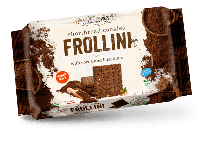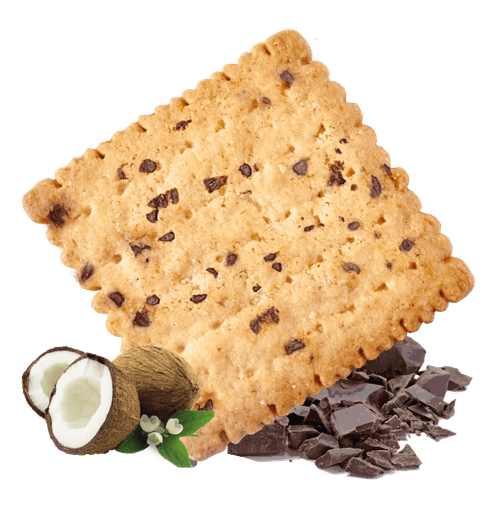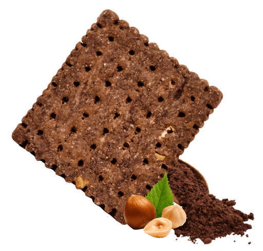 Farina di GRANO, zucchero, olio di girasole, 3,5% NOCCIOLE (UE), 3% cacao in polvere (Extra-UE), farina di fiocchi di ROVETI integrali, sciroppo di glucosio disidratato, amido di mais, malto di GRANO, sale marino, agenti lievitanti (bicarbonato d'ammonio, bicarbonato di sodio), aromi.