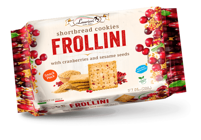 Farina di GRANO, zucchero, olio di girasole, 3,5% mirtilli rossi (mirtilli rossi, zucchero, olio di girasole) (non-UE), 3,5% semi di SESAMO (non-UE), sciroppo di glucosio, amido di mais, malto di GRANO, sale marino, agenti lievitanti (bicarbonato di ammonio, bicarbonato di sodio), aromi.