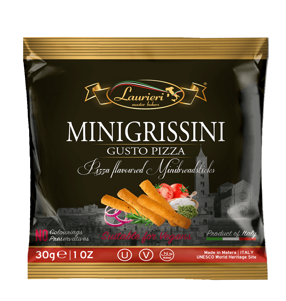 Farina di grano, olio di girasole, olio d'oliva, 3% di polvere di pomodoro (UE (Italia)), 2% di sale marino (UE (Italia)), lievito, 0,5% di cipolla (non UE), origano, 0,3% di rosmarino (non UE), 0,2% di aglio (non UE).