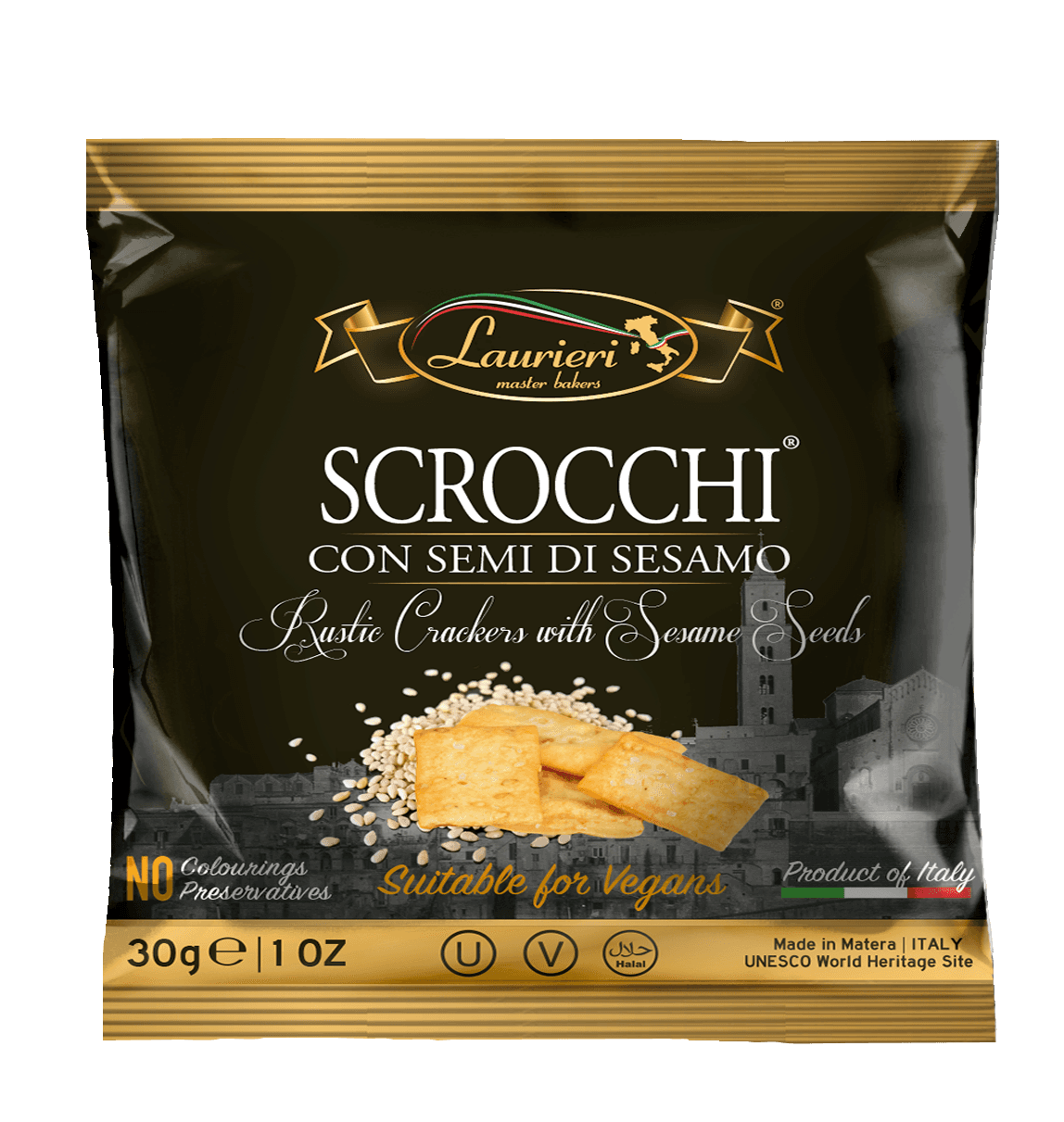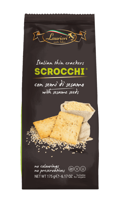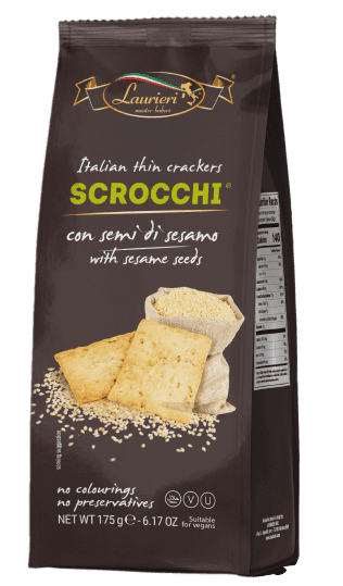 Farina di GRANO, olio di girasole, semi di SESAMO al 7% (non UE), olio d'oliva, sale marino, lievito.