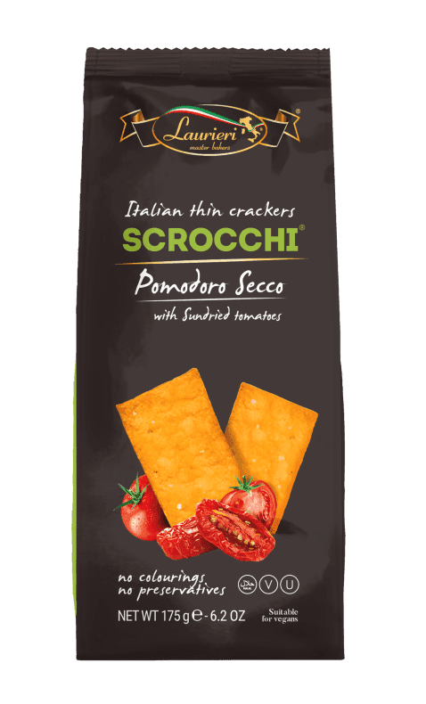 Farina di FRUMENTO, olio di girasole, olio d'oliva, 5% pomodori secchi (non UE), sale marino, lievito.