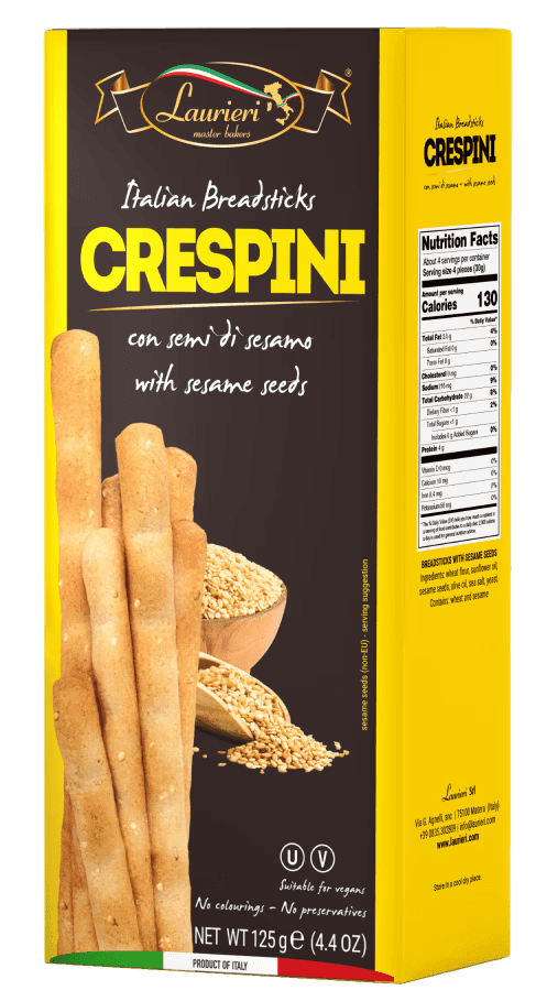 WHEAT Flour, sunflower oil, 8% SESAME seeds (non-EU), olive oil, sea salt, yeast.