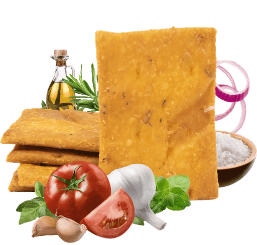 WHEAT Flour, olive oil, sunflower oil,3% tomato powder (EU (Italy)), 2.4% sea salt (EU (Italy)), yeast, 0.5% onion (non-EU), oregano,0.3% rosemary (non-EU), 0.2% garlic (non-EU).